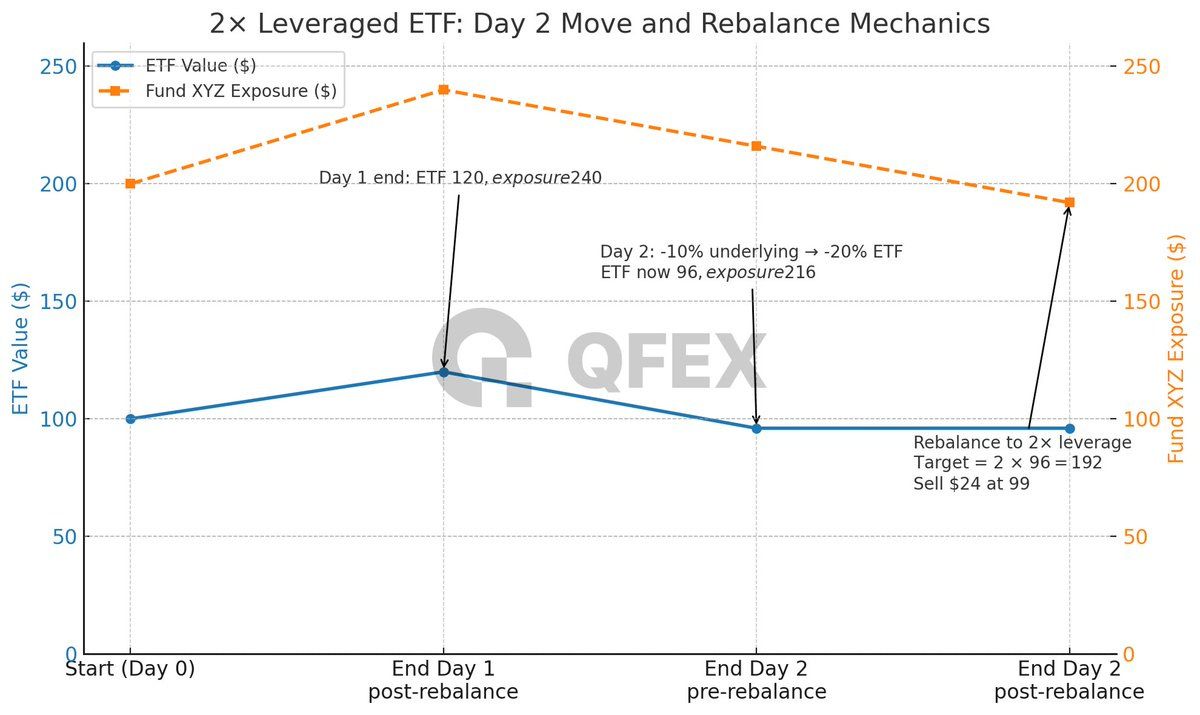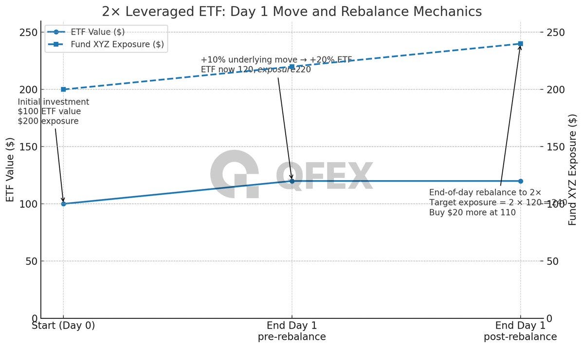 But to maintain 2x leverage at the end of the day, it needs $240 of exposure (2x my $120 ETF position)
